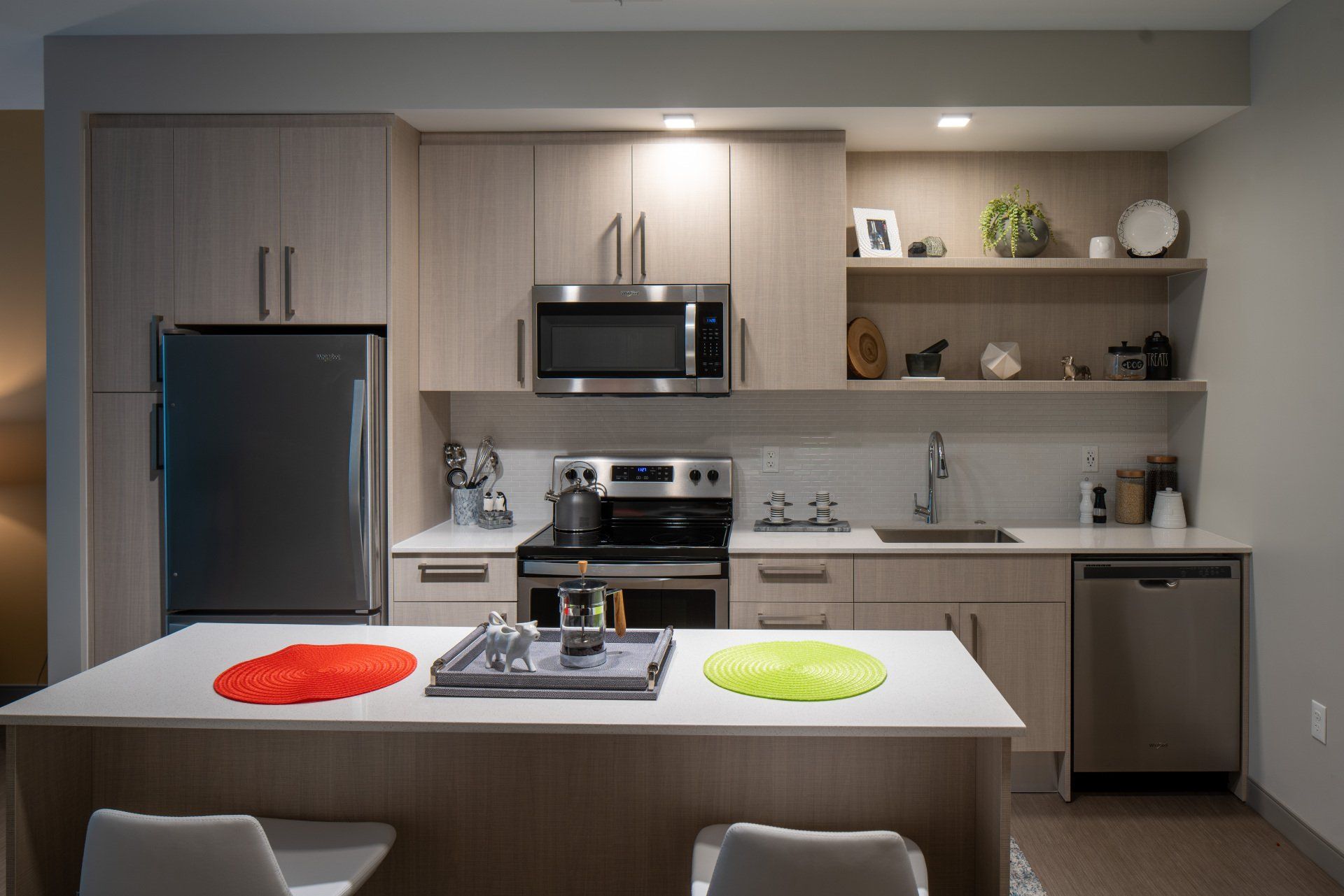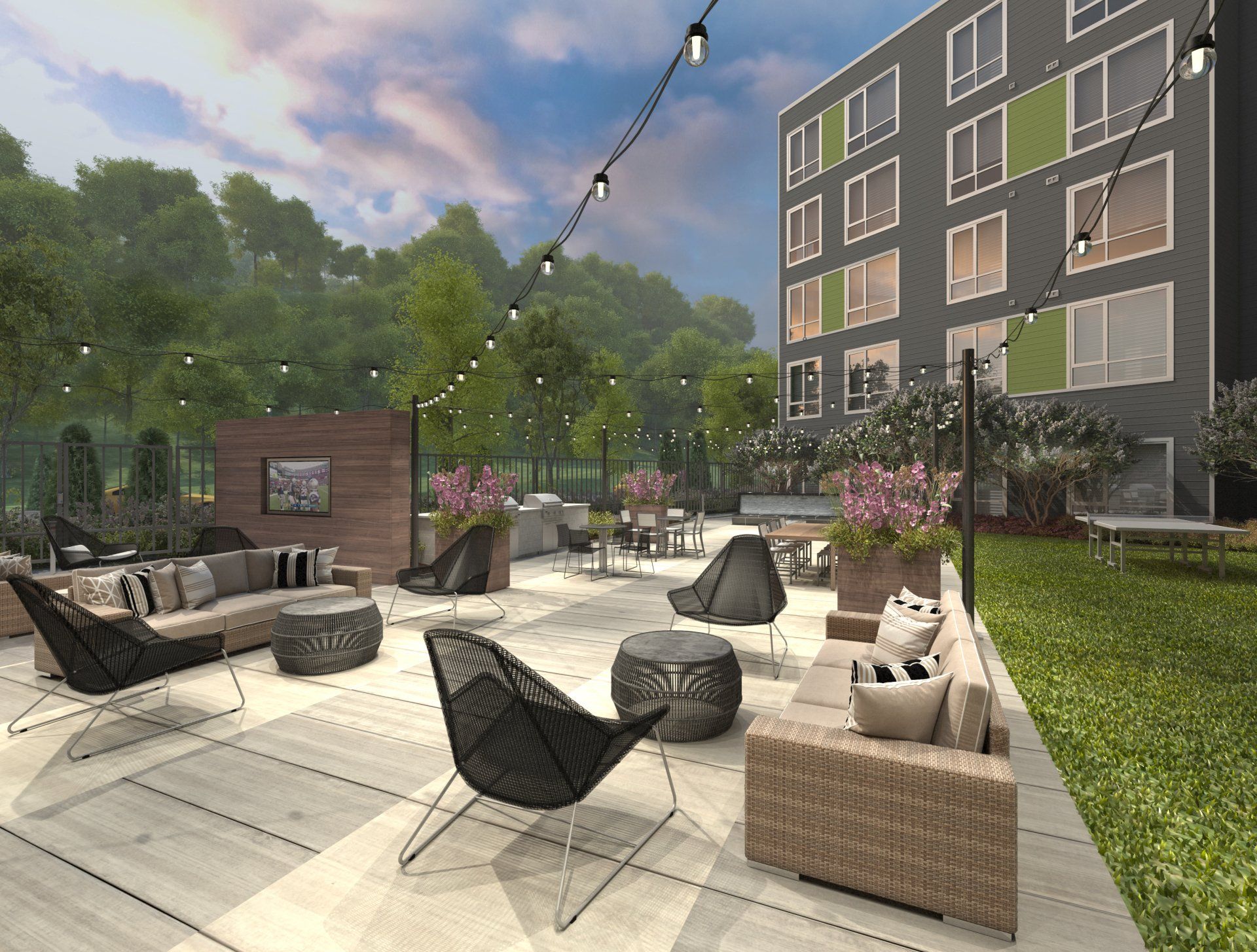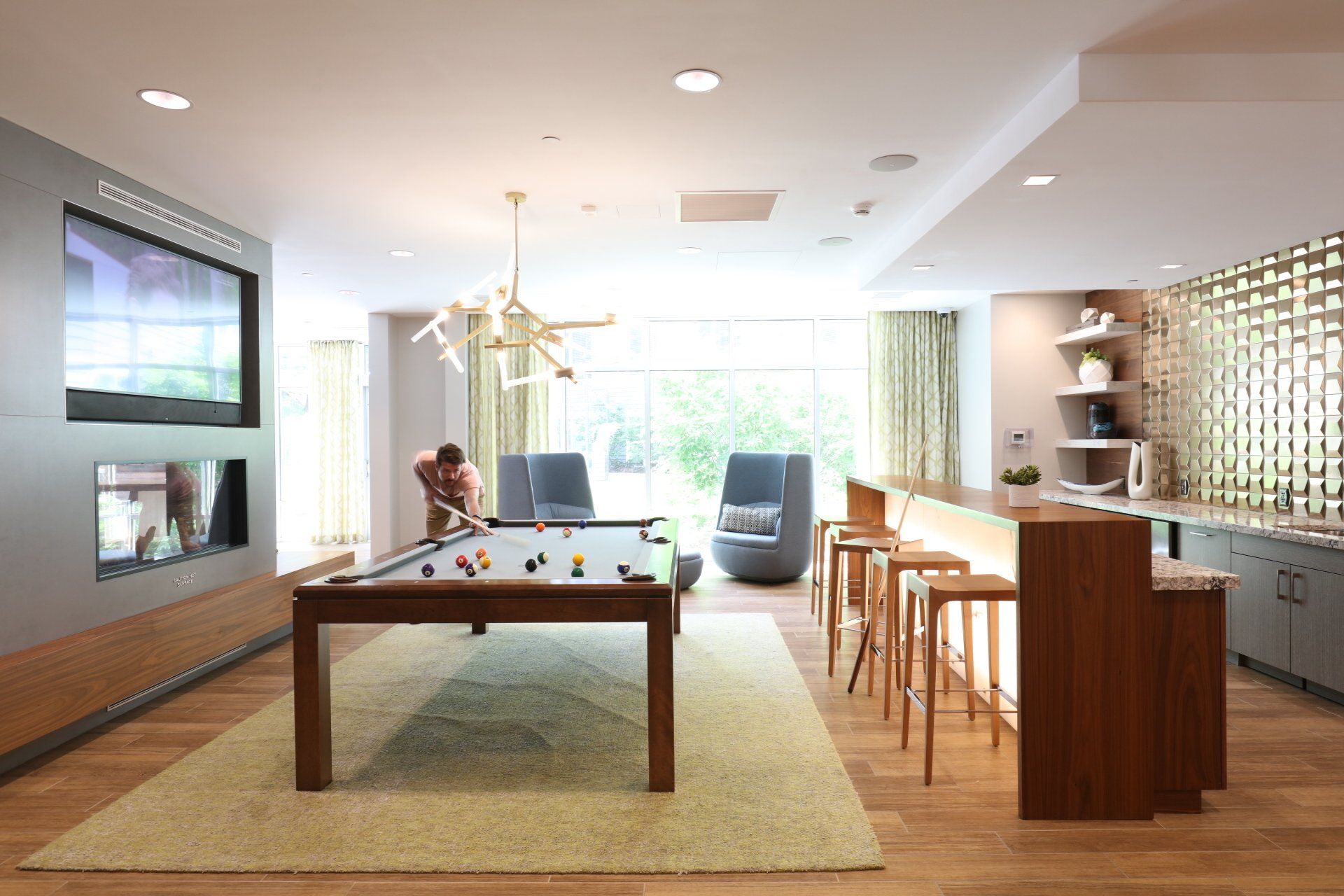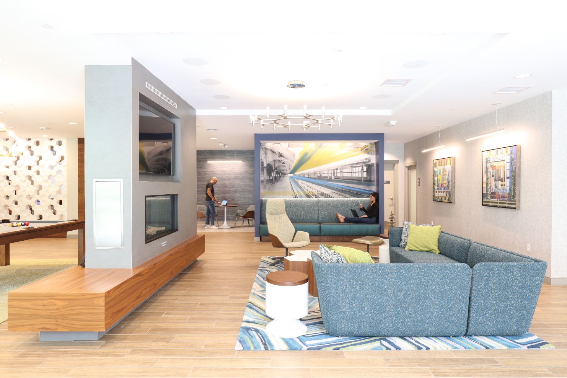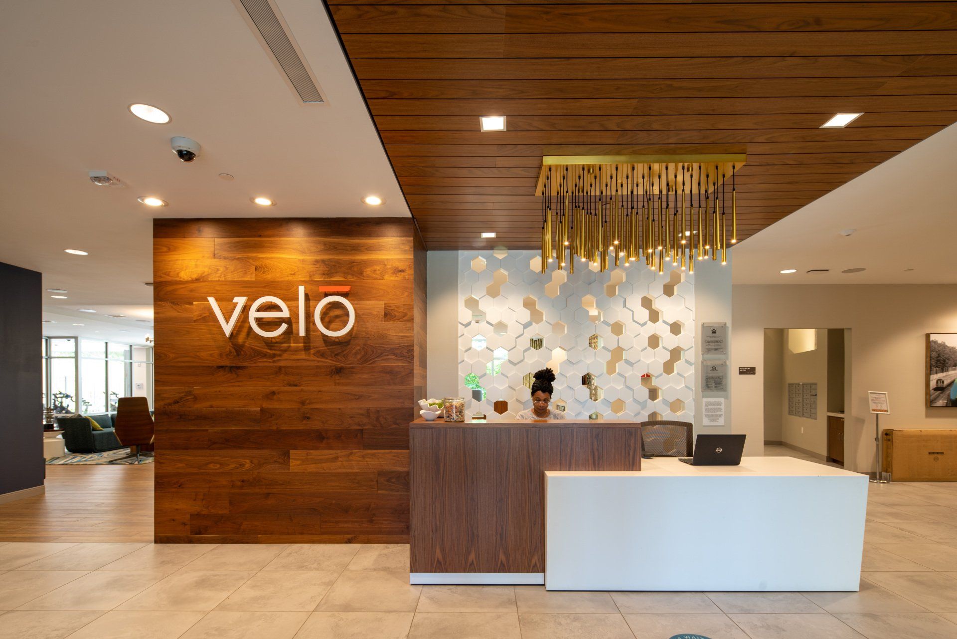 Velo's spacious courtyard with fireplace and outdoor grills accompanies a vibrant indoor amenity space including billiards, community kitchen and state of the art fitness space.